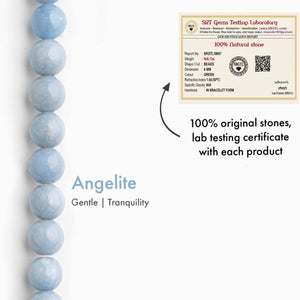Features authentic Angelite natural stone beads, known for their calming and soothing properties. Angelite is revered for promoting inner peace, compassion, and heightened spiritual awareness. This bracelet is perfect for those seeking to enhance communication and cultivate emotional healing.