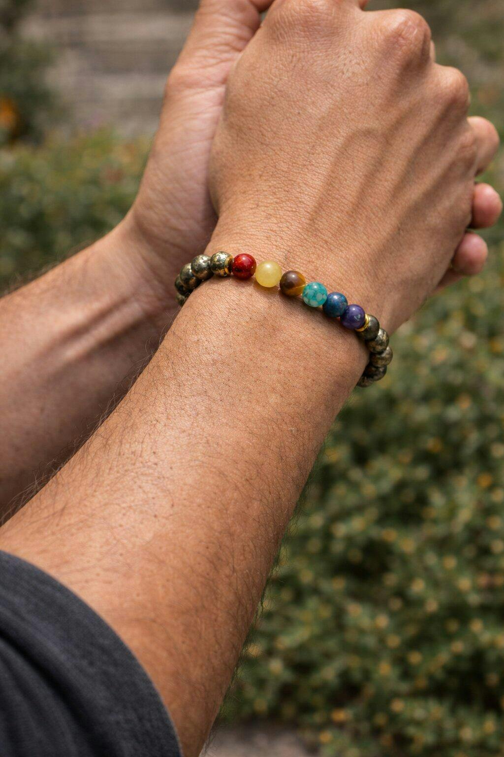 Money Magnet Pyrite 7 Chakra Natural Stone Bracelet (Unisex)